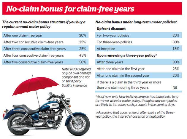 "The insured will get a 30% discount on the three-year cover. The insured will also be entitled to no-claim bonuses post the tenure," says G. Srinivasan, Chairman, New India Assurance. The company offers discounts of 20% and 30% on two-year and three-year policies respectively (see chart). You could also save on premiums if you buy a long-term third party liability cover as IRDAI hikes third party cover tariffs by 20% every year.